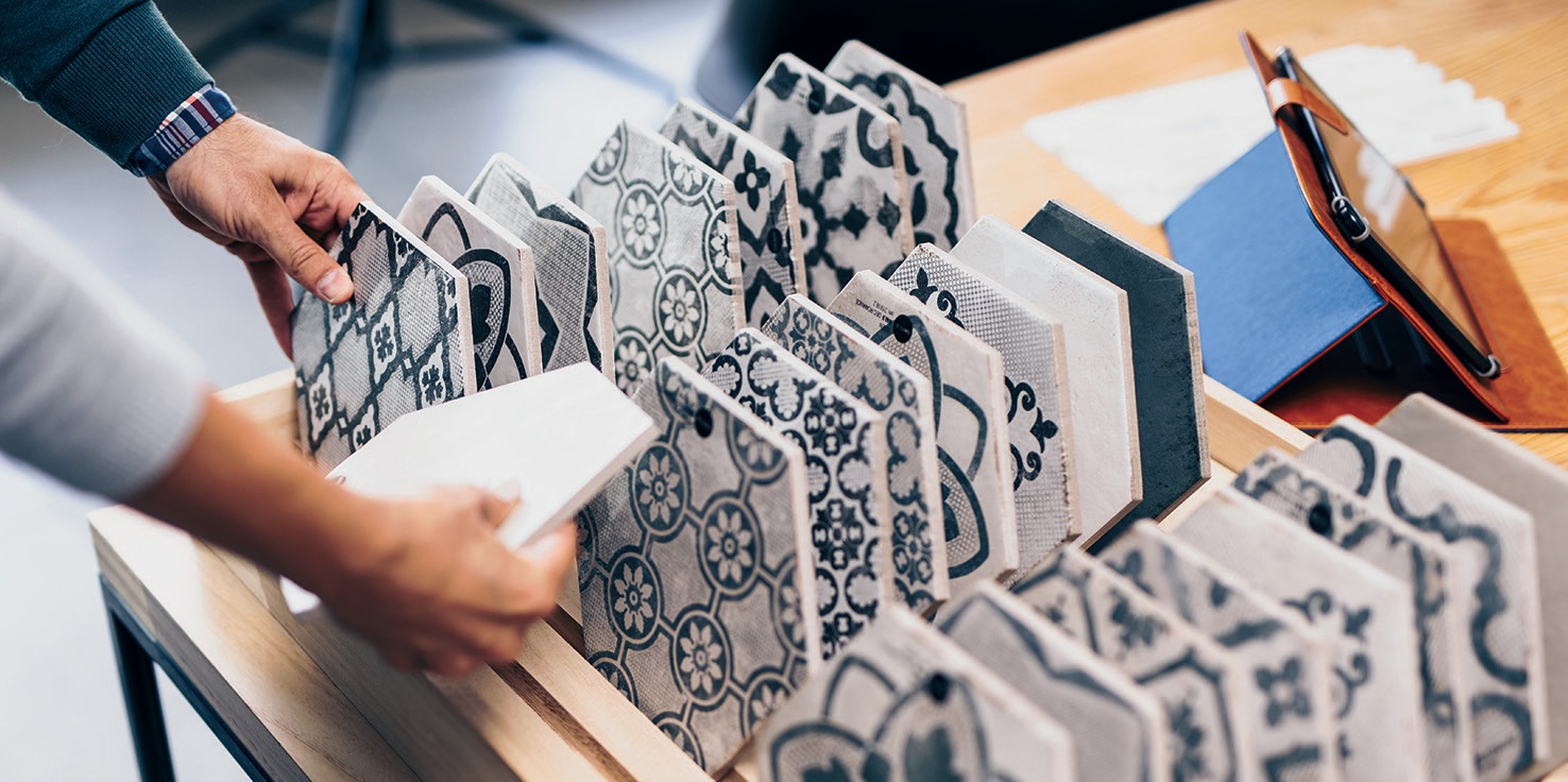 - über eine hinterlegte Bildergalerie können die Fliesen noch mehr überzeugen als allein über die Präsentation in der Ausstellung
